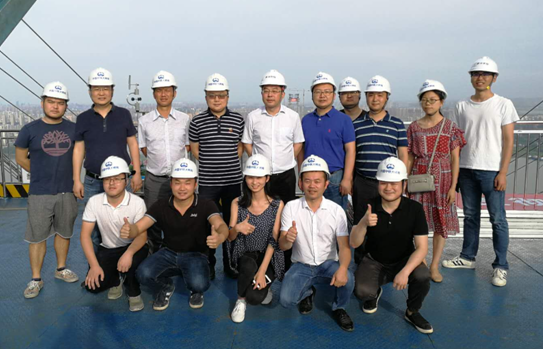 在建設單位天興洲道橋公司和施工單位中鐵大橋局現場領導的帶領下,鐵投公司干部職工首先觀看了楊泗港長江大橋的工程建設宣傳片,對長江大橋的全貌、世界領先的技術、先進的施工工藝以及強大通行能力有了直觀的學習了解。隨后,參觀了榮譽室,見證了武漢“橋之都”的輝煌成就。最后,大家走進楊泗港長江大橋北岸錨碇和北塔塔頂施工現場,登上200余米高的大橋主塔,親身體驗貓道行走,學習貓道及主纜施工的原理及工藝,整個過程驚險非常。大家在贊嘆大橋工程建設高水平的同時,也進一步激發了在自身崗位上積極工作、有所作為的責任感和使命感。