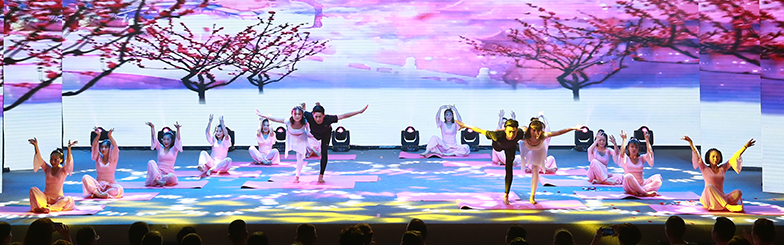 伴隨著滌蕩心靈的唯美音樂,“武水麗人”向現場觀眾展示著最美好的自己。一呼一吸,寧靜優雅,端莊細膩;舉手投足,行云流水,柔軟曼妙,將女性之美發揮到了極致。精彩的表演將現場觀眾帶入到一種妙不可言的秘境之中……不同風格的瑜伽體式展示,與美輪美奐的舞臺背景完美融合,給現場的眾多瑜伽愛好者帶來了一種全新的感官體驗,共同經歷了一場心靈的洗禮。