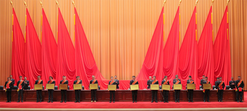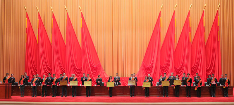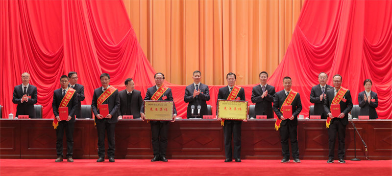 ▲集團公司領導向受表彰的“揭榜攻堅”先進團隊代表,年度工作、安全生產、科技創新、綜治信訪的先進集體和先進個人代表頒獎