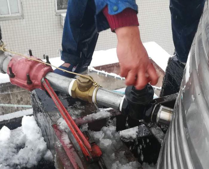 30日上午9點,搶修人員朱全忠接到武泰閘小區59棟2單元用戶反映的漏水信息,趕到現場,對漏水原因逐段展開排查。風雪中,他爬上樓頂水箱,因為冰雪天氣里這里最容易冰裂漏水。凜冽的寒風、飛舞的雪花和腳下的積雪,給高空作業增加了難度,朱全忠小心翼翼,從水箱內的浮球閥,到水箱外的進水管、出水管、進水閥等設施逐一檢查,手凍得通紅。但他仍一絲不茍,最終將漏水故障排除。