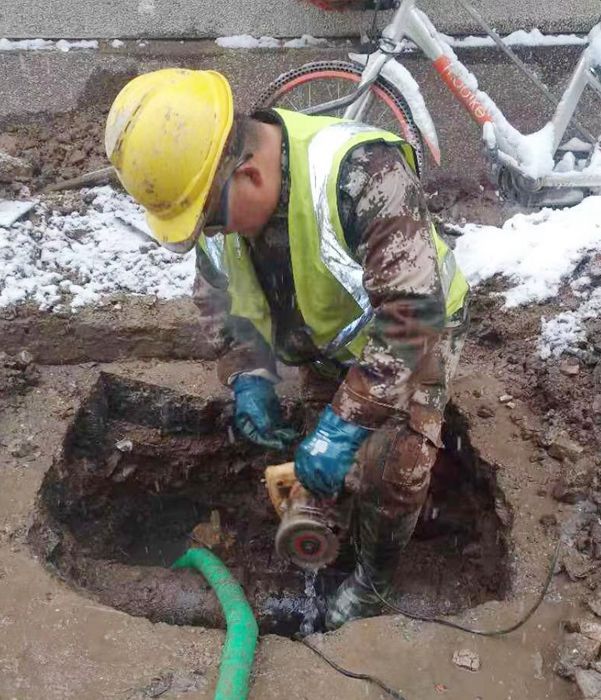 30日上午10時,漢口供水部維修工程處接到徐州五村拆遷片區直徑200毫米供水管道漏水的信息,搶修人員立即趕到現場,清理漏水點周周圍的積雪和建筑垃圾。搶修人員王新華一邊指揮工友,一邊用凍得通紅的手刨雪水里的磚渣,他希望盡快為工友清理出施工段面,盡快恢復供水。在雪中搶修人員幾次滑倒,站起來又接著干,在寒冷的水坑里,一站就是半小時,腳凍得發麻仍不停搶修,終于在13時許將管道漏水堵上。