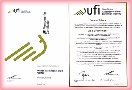 2019年年底,武漢國際博覽中心作為湖北省首家通過國際展覽業協會(UFI)資格認證的場館,正式加入UFI大家庭,這標志著武漢國際博覽中心正式邁入國際化展館行列。