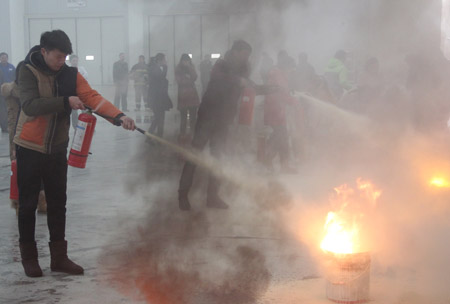 演練由3個部分組成,首先是模擬展館出現火情后,消防廣播響起,館內相關人員從內環疏散,經營公司安全部現場值班人員使用消防水袋展開滅火工作;隨后展館消防站、漢陽區消防大隊的消防官兵趕到火災現場,利用消防車上的消防水袋和水源進行滅火,并轉移現場受傷群眾;最后由展館經營公司抽派部分員工進行了干粉滅火器的現場實際滅火操作。