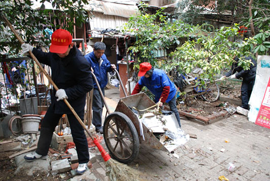 在毛澤東同志“向雷鋒同志學習”題詞發表52周年紀念日之際,為大力弘揚雷鋒精神,倡導時代新風正氣,動員全體職工立足本職、服務社會,2015年3月4日上午,城投房產集團組織所屬各分公司學雷鋒志愿者及部分干部職工共計50余人,進入?口區宗關街井南社區、江岸區洞庭社區、花橋小區等地,開展了形式多樣的便民志愿服務活動。