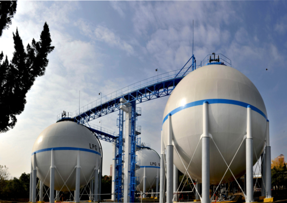本次罐體全面檢驗相比以往呈現新的亮點,罐體表面防腐保護漆嚴格按國家標準認真調色,對罐區鋼結構盤梯和平臺進行全面除銹和噴涂防銹底漆、藍色面漆,并新噴印LPG標識及球罐中部的環形藍色帶,換妝后的三座1000立方米球罐在陽光下熠熠生輝。
