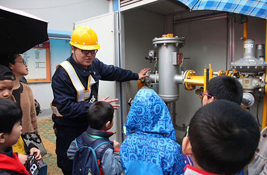 在熱線中心,工作人員介紹了天然氣線電話受理的情況。隨后,小記者們觀看了天然氣使用注意事項的動畫片,學習如何安全用氣、遇險之后如何自救。工作人員介紹說:“當我們懷疑天然氣泄漏時,千萬不要開燈,也不能在家里報警,一定要立即開窗通風,并盡快到室外場地去打電話,以免電火花引爆然氣,使用天然氣最重要的就是要保持用氣場所的通風。”