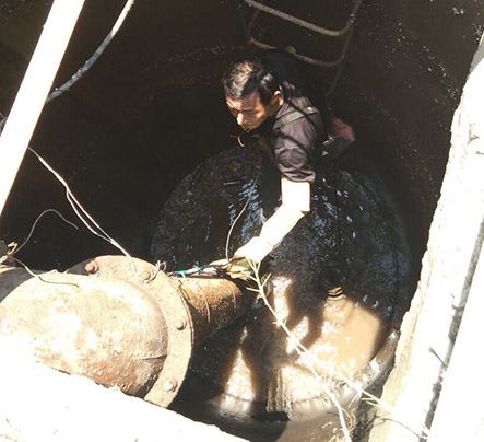 7月9日,當現場達到維修條件,中心副主任周全親自在現場指揮,組織天興洲大橋管理所對抽水泵電動裝置進行了維修。35度的高溫濕熱天氣,考驗著管護隊員們的忍耐極限,為了那一份職業擔當,管護隊員們全身著厚重的下水服,下井對故障的浮球閥進行了更換,處置了電路故障,在經多次設備的調試下,南湖村泵站于當日12時恢復了自動抽排,故障隱患解除。