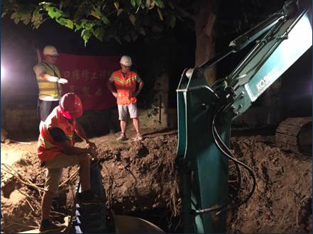 7月25日,水務集團總經理黃思了解情況后,趕到工地作出要求:一是立即鋪設一條DN600的臨時供水管道,保證正常的供水;二是將漏水的DN800管道斷開,對管道上面的違章用房下達整改通知書,徹底消除對兩條鐵路的安全隱患。7月26日,江城驕陽似火,氣溫超過37℃,漢口維修工程處施工人員進駐現場,揮汗如雨、開始鋪設臨時供水管道。此次施工時間緊張,安裝管道施工難度較大,該處位于堤路邊鐵路橋下,除一根直線管道外,還需安裝一處爬梯管道。因日常車輛行駛較多,為避免影響正常的交通秩序,按照交管局的要求,漢口維修工程處每天安排人員24小時值守,日夜施工。白天烈日烘烤,晚上連續施工,人員三班輪崗,終于以最快的速度完成臨時管道的安裝。至7月29日,130米直徑600毫米管道和150米直徑200毫米管道安裝完畢。經過連接各個配水管點、沖洗、消毒,到8月1日上午10時,漏水管道廢除,臨時管道啟用,危及高鐵安全的漏水問題得以徹底解決。