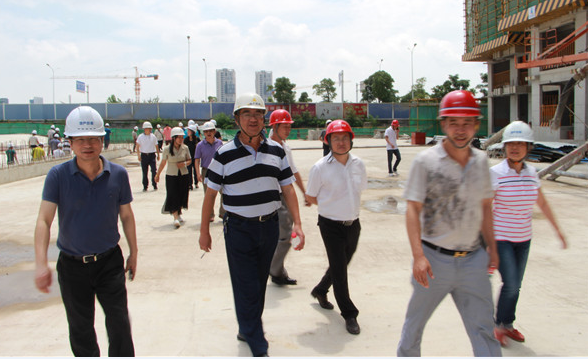 7月4日上午,武漢地產控股集團組織開展在建開發項目內部觀摩會。由城投房產集團所屬武漢市天時建筑工程有限公司施工的光谷188國際社區住宅二期項目作為示范工地迎接觀摩,武漢地產控股集團領導陳永剛、王繼兵等攜各部門及其所屬開發項目的施工、監理單位100余人蒞臨工地進行觀摩,并對天時公司施工現場的安全文明、施工質量等方面給予高度評價。房產集團總經理張國良、天時公司總經理裘維亞陪同參觀。