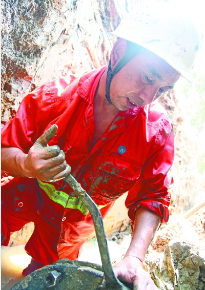 昨天中午12點多,武漢市天然氣公司巡線員金城在學府北路一處工地巡檢時,發現該處中壓燃氣管道存在漏氣現象。天然氣公司緊急調動兩臺搶修車和一臺挖機到現場,經過開挖,詳細排查,找到漏氣源頭來自燃氣管道法蘭處。由于工地基坑狹窄,有兩米多深,只容一人作業,燃氣搶修員黃忠明換上套鞋,由兩名工作人員協助慢慢放下。黃忠明一個一個更換螺絲,一個一個擰緊。約40分鐘后,搶修完成,黃忠明喘著粗氣,坐在基坑旁的小樹下,倒出鞋里的積水,還開玩笑說:“腳最涼快。”