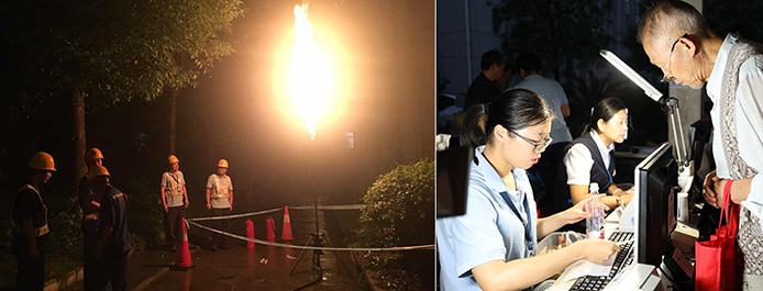 22日晚,天然氣公司工作人員冒雨在陸鷂小區涼亭里為居民辦理業務;安檢員認真檢查戶內管線、燃氣器具,查找安全隱患,并向居民宣傳天然氣安全用氣知識,推廣公司延伸服務。