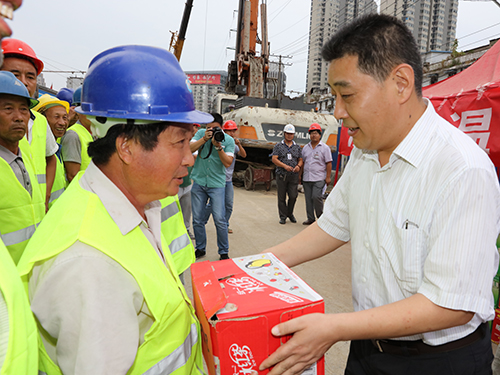 彭浩表示,今天受萬勇市長委托,看望城投公司生產建設一線的同志們,感謝你們在高溫酷暑里堅守在生產建設一線,為了市民安全用水用氣、為了城市建設所作的積極奉獻!他勉勵大家繼續發揚這種不怕高溫酷暑、克難奮戰的精神,再接再厲,為城市的發展再作貢獻。