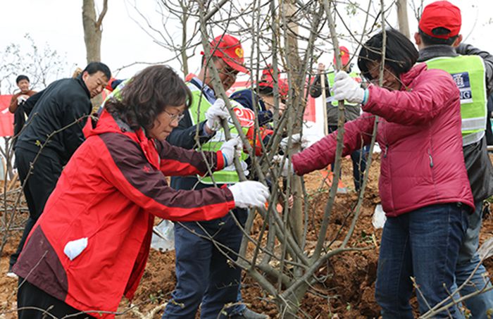 在植樹現(xiàn)場,公司領(lǐng)導(dǎo)吳文、江強(qiáng)生、余靖玲、朱斌、盛華、陳春保、王賢兵與大家一起揮鍬鏟土,提水澆灌。全體同志興致勃勃,干勁十足......