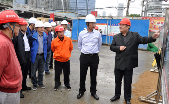 9月29日下午,市政府副秘書長、市重點辦主任彭濤檢查了江漢四橋安全生產工作,市重點辦副主任李國耀,市建委副主任夏平,市城投公司副總經理林馳以及道橋公司、湖北路橋、飛虹監理等有關單位和人員參加了檢查。