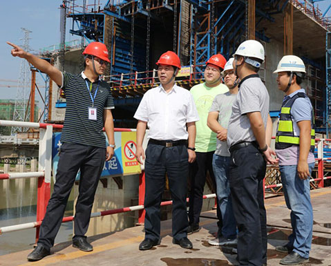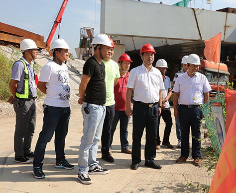 9月15日上午,集團公司董事長金國發前往岱山大橋和解放大道下延線朱家河大橋工程現場,檢查工程建設情況。