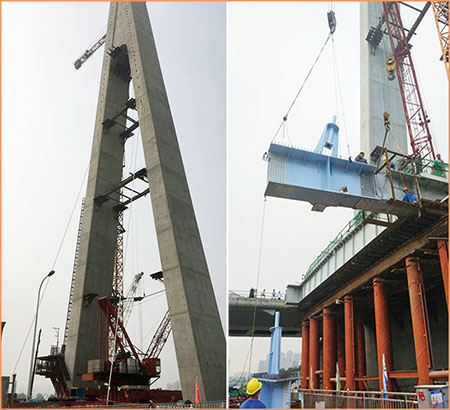 日前,由市城投公司負責建設,道橋公司代建、湖北路橋公司施工的江漢四橋拓寬改造工程完成首節正橋鋼箱梁拼裝和首對4根斜拉索掛設。