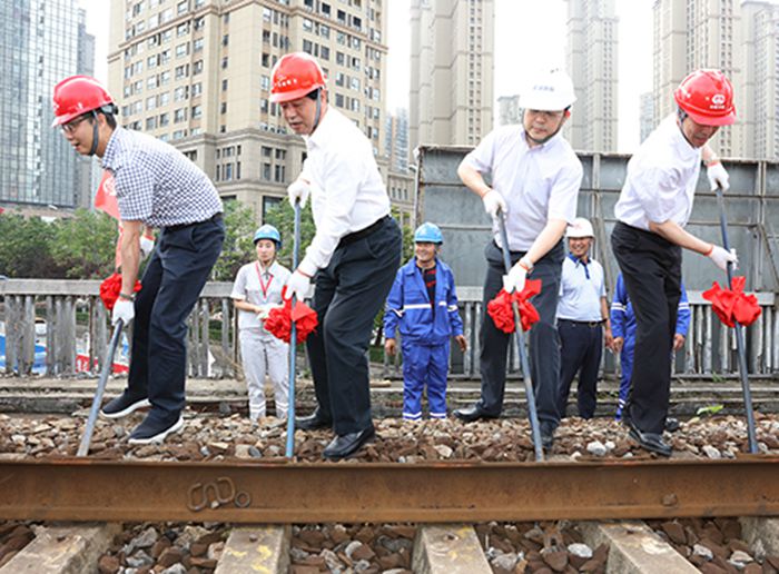 金國發一行在集團公司副總經理、鐵投公司董事長汪國圣等的陪同下,先后前往和平大道三角路鐵路橋、綜合管廊施工現場進行了調研踏勘,并與武漢局集團公司及相關建設單位負責人,共同撬動拆除了武九鐵路北環線第一根鐵軌,標志著武九鐵路北環線拆除工作正式啟動。隨后,金國發一行到鐵投公司召開調研會議。