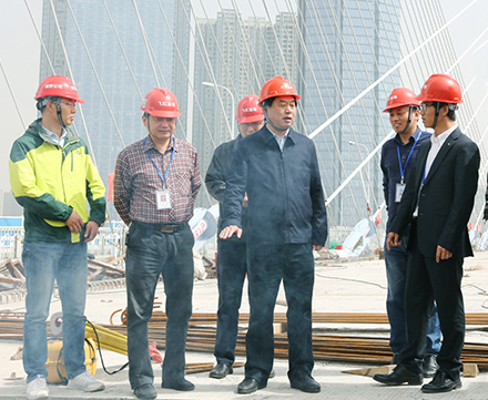在漢江大道寶?路高架橋現場,金國發要求參建單位在搶抓工期的同時,做好橋下路面維修工作,保障周邊居民通行方便。在漢江大道月湖橋現場,金國發檢查了月湖橋主橋建設工作,要求各單位把精細化管理的要求落實到后期收尾工作中,按期完工通車。