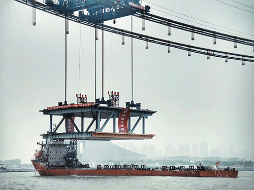 楊泗港長江大橋橋址位于黃金水域,往來船舶眾多,施工期間氣溫低、降雨多,給鋼桁梁施工帶來諸多不便。城投公司提前統籌調度,針對鋼桁梁架設工作,從2017年就會同大橋局研究制定了“雙機抬吊”的關鍵性施工措施,有利于提高架設效率,并能抵抗長江江面大風等不利氣候因素。按照計劃,鋼桁梁架設將于12月中旬全部完成。
