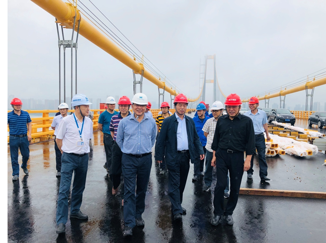 6月18日上午,集團(tuán)公司董事長金國發(fā)同志一行前往楊泗港長江大橋項(xiàng)目現(xiàn)場檢查調(diào)度工程建設(shè)情況。金國發(fā)同志聽取了項(xiàng)目建設(shè)情況的匯報(bào),要求項(xiàng)目參建單位進(jìn)一步提高政治站位,加強(qiáng)節(jié)點(diǎn)控制,強(qiáng)化安全管理,按照“精致武漢建設(shè)年”要求,落實(shí)精細(xì)化管理舉措,把楊泗港大橋項(xiàng)目打造成精品工程、亮點(diǎn)工程。公司項(xiàng)目管理部、道橋公司等主要負(fù)責(zé)人,中鐵大橋局公司黨委副書記黃支金、大橋院黨委書記田道明等參加檢查。