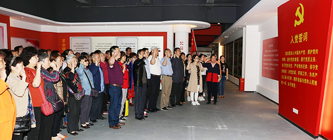 在黨員宣誓廳,參加活動的黨員在漢汽社區黨委書記王靜的領誓下,重溫了入黨誓詞。宣誓儀式中,黨員們表情認真嚴肅、聲音整齊嘹亮,“我志愿加入中國共產黨……”的錚錚誓詞響徹整個黨建文化館,充分體現了黨員們永遠跟黨走的決心。