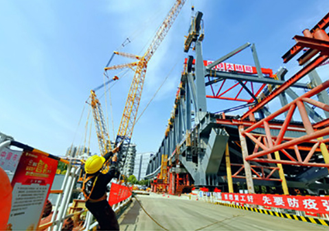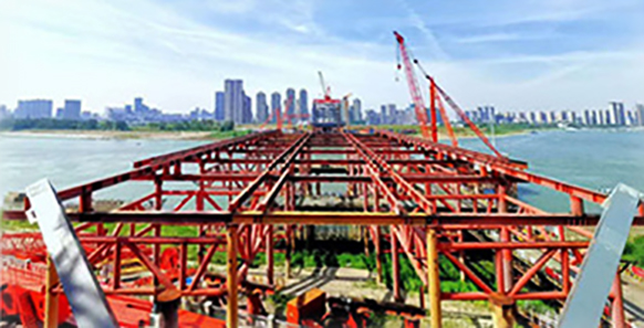 作為市城建重點(diǎn)項(xiàng)目,同時也是全市首個復(fù)工的橋梁項(xiàng)目和第一批復(fù)工的重點(diǎn)在建工程,江漢七橋項(xiàng)目位于揚(yáng)州的鋼梁加工基地3月7日即已復(fù)工,生產(chǎn)項(xiàng)目所需的鋼桿件。3月23日主橋工區(qū)正式復(fù)工后,立即掀起了施工熱潮,現(xiàn)場生產(chǎn)水平迅速恢復(fù)至正常狀態(tài),因疫情耽誤的工期已逐漸搶回,在《新聞聯(lián)播》《朝聞天下》等中央欄目中多次亮相,受到社會各界廣泛關(guān)注。
