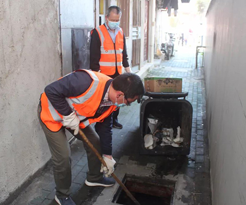 10月1日上午,房產集團工作人員在管轄的房屋區域疏通窨井