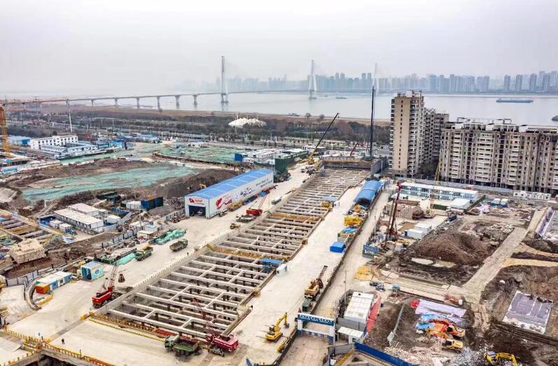 二七路過江通道(解放大道-沿江大道段)主線全長550米,包括新港西延線二七路地鐵車站253米,明挖區間段271米以及漢口盾構井26米。工程開挖深度為地下34~47.7米,開挖總方量達80萬立方米,是我市在建開挖最深基坑的市政項目。