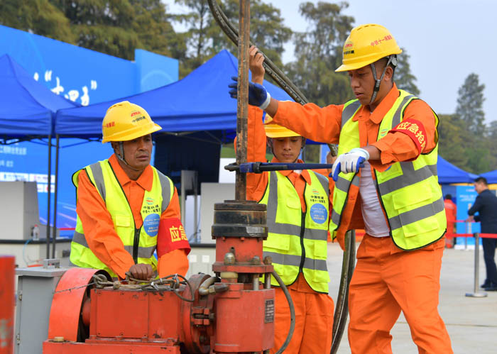 針對在深基坑施工中可能發生的突發涌水事件進行應急預演;操作刀盤直徑15.09米的盾構機在復雜地層中掘進,確保偏差不超50毫米……10月28日下午,由市城投集團公司工會主辦,橋建集團工會、兩湖隧道東湖段臨時聯合黨支部承辦的技能比武大賽,在兩湖隧道東湖段項目現場舉辦。項目各參建隊伍通過以賽促建的方式,為應對項目工程建設中可能出現的難題,提前練兵備戰。
